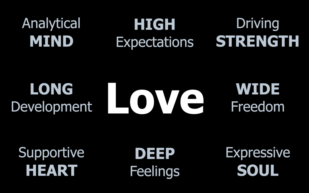 The great commandment, to “love the Lord your God” (Luke 10:27) is mostly about how: “with all your heart and with all your soul and with all your strength and with all your mind”. We usually ignore that part of the verse, but it’s really helpful.